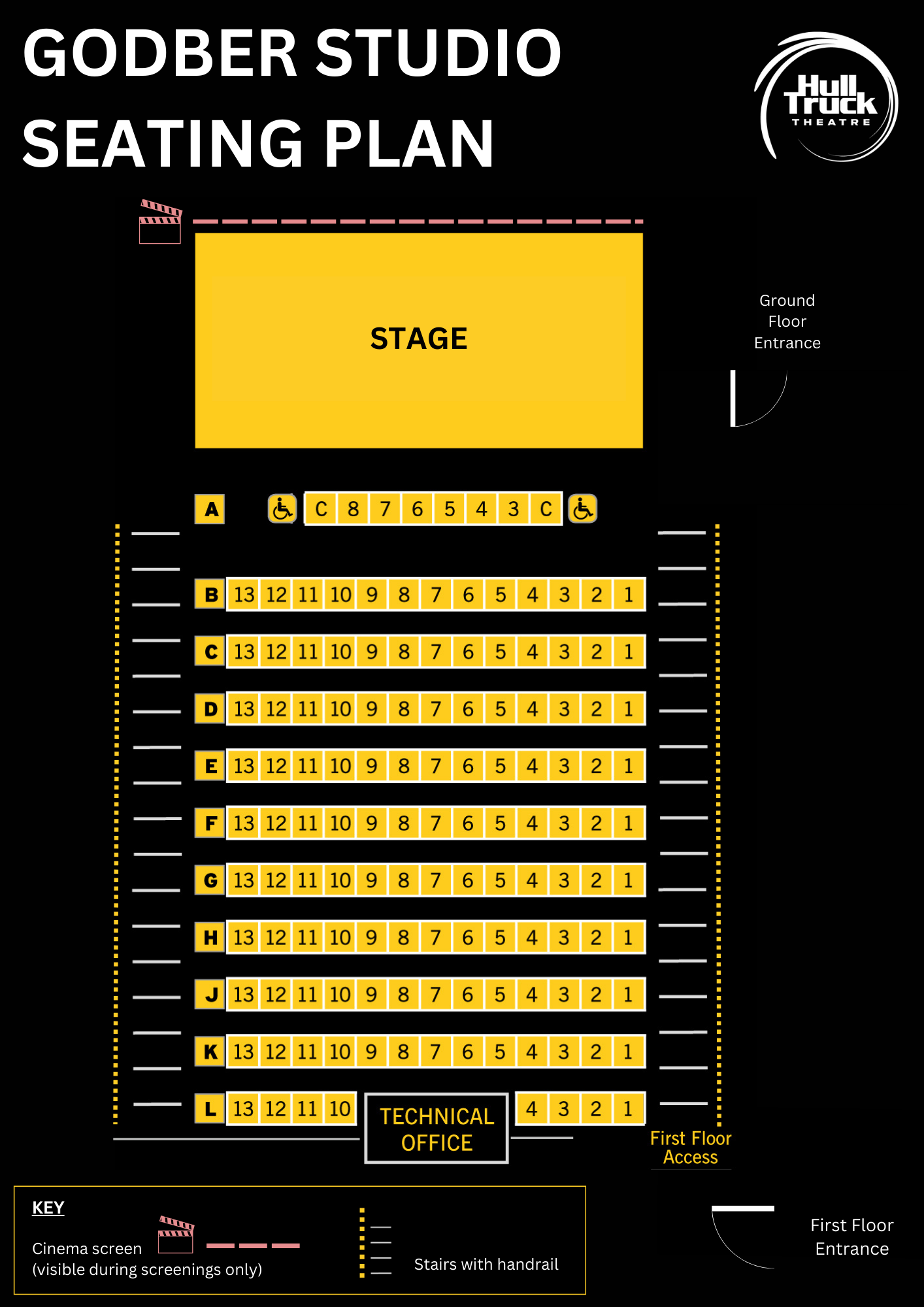 You can view the Godber Studio seating plan by clicking the green button above.