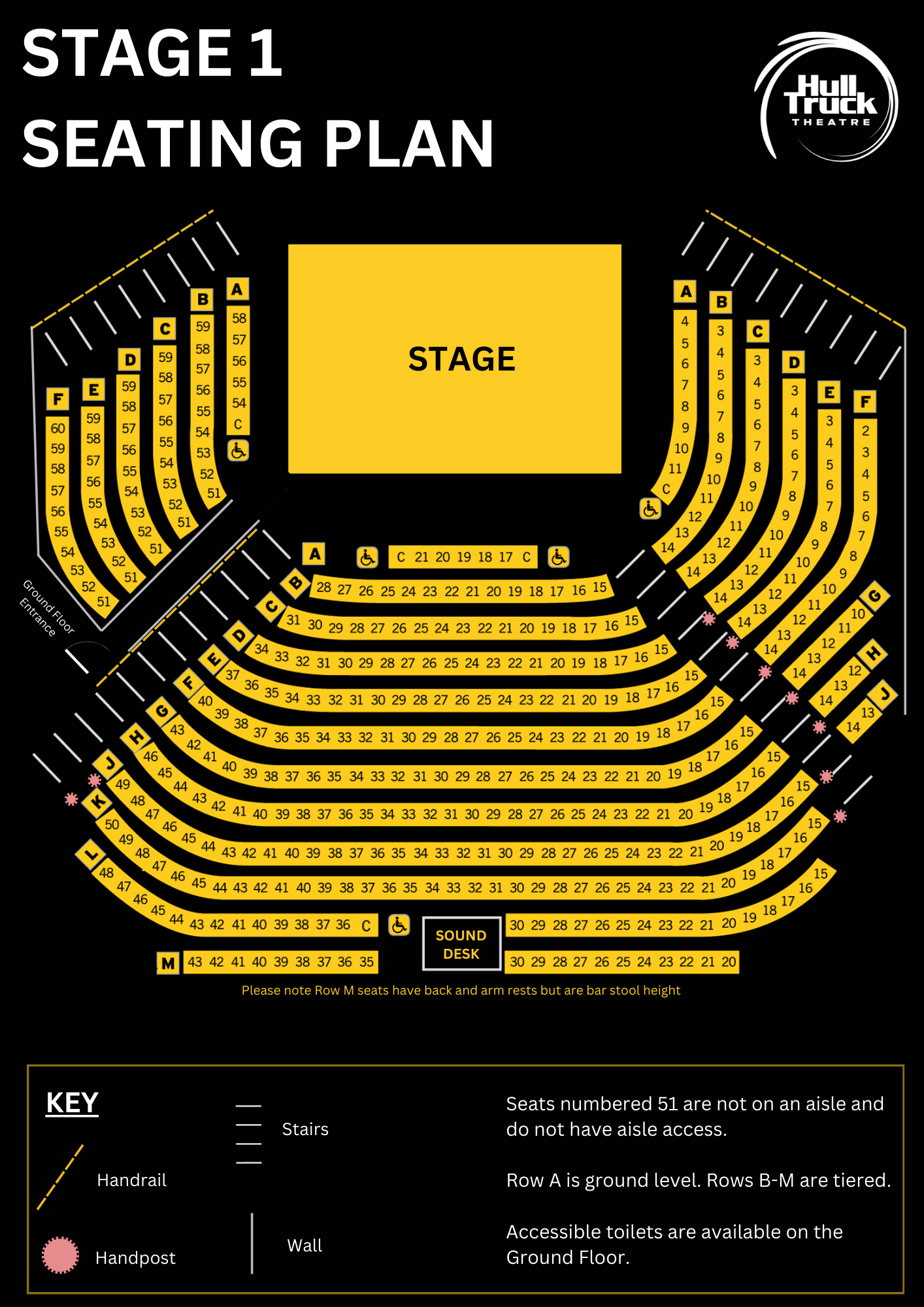 For more information about accessible seating and access in Stage 1 (including photos) please click the button above to view our access seating guide.